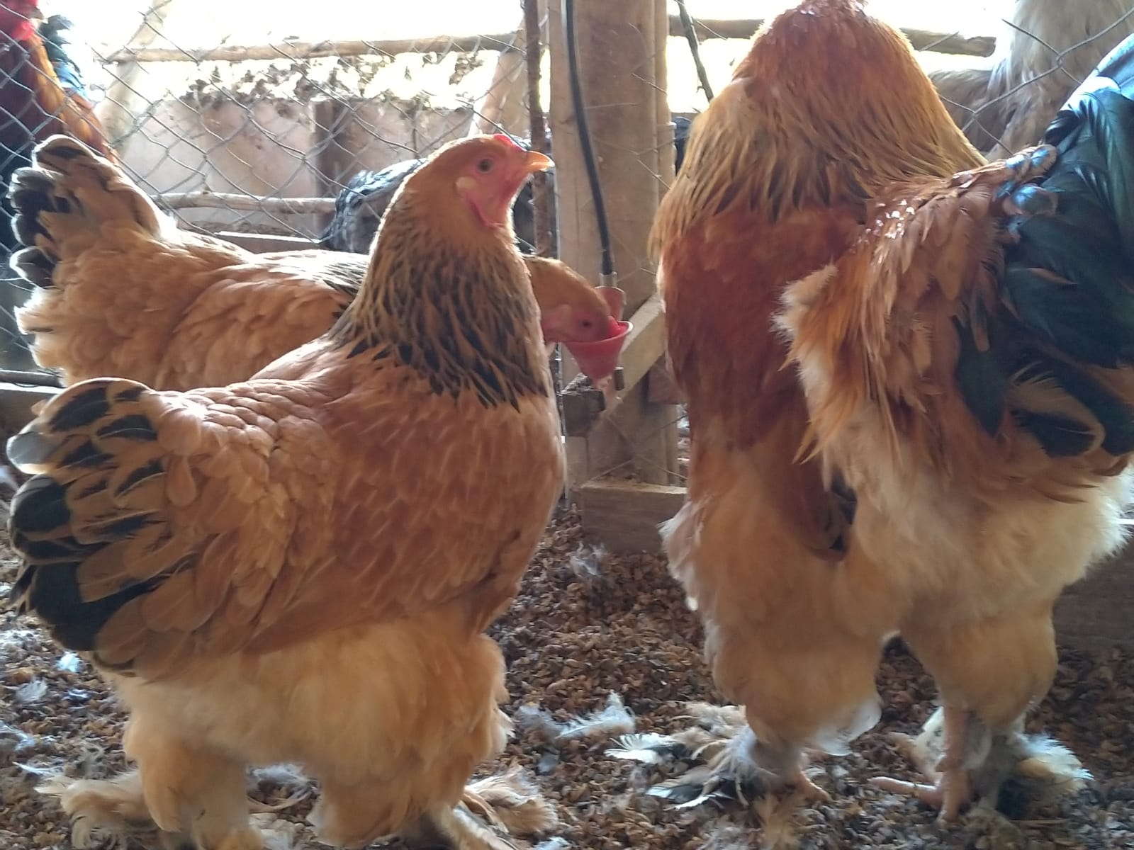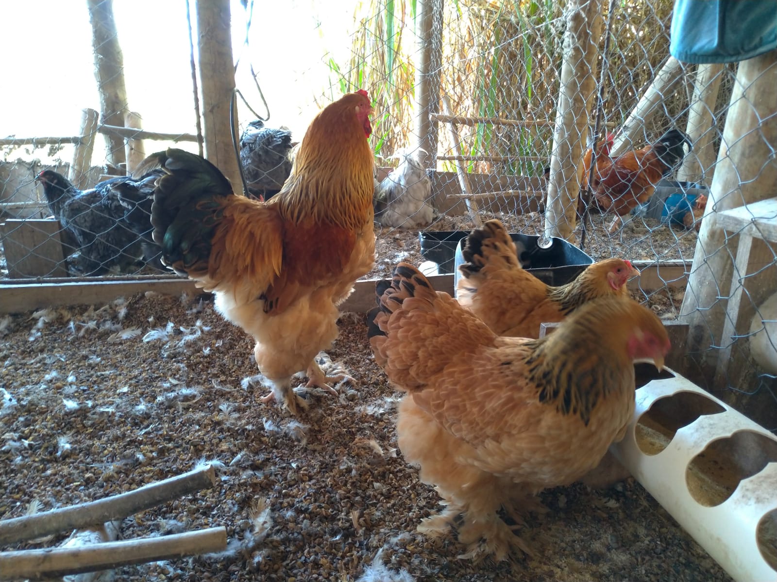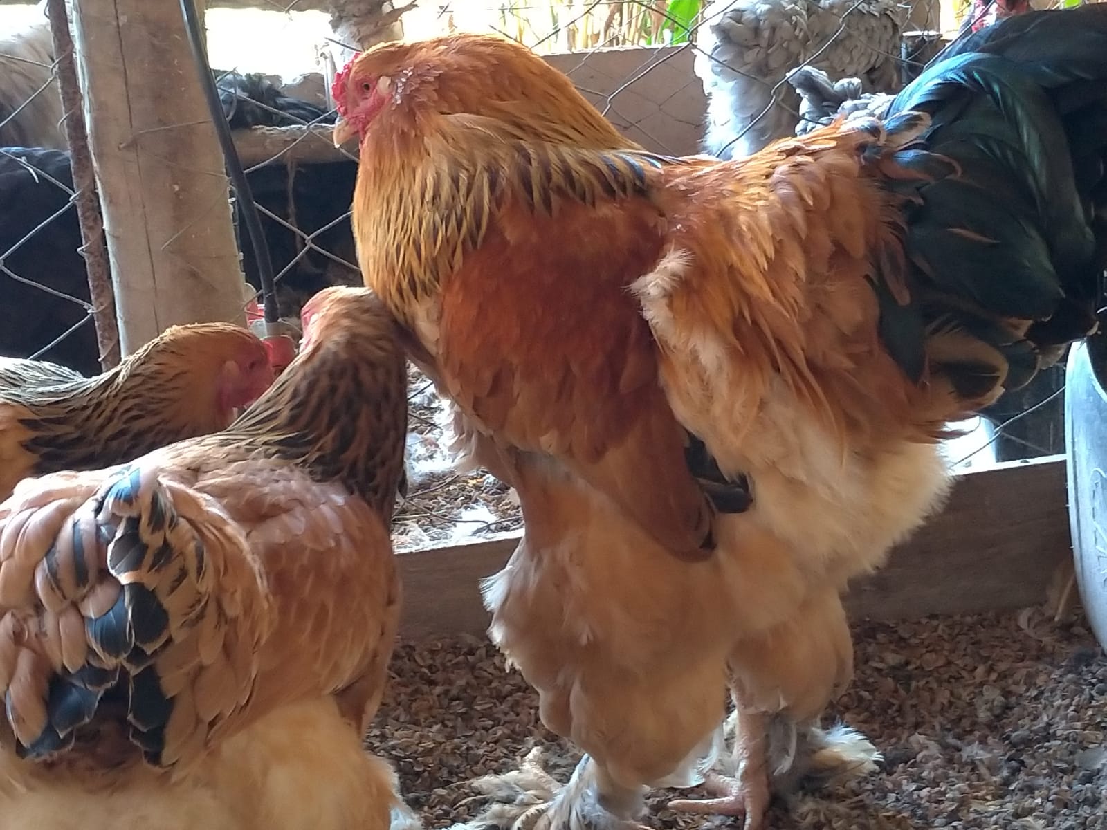 O galo pesa de 5 a 7 kg e mede de 60 a 80 cm de altura. A fêmea pesa de 4 a 5 kg e produz de 150 a 200 ovos por ano.