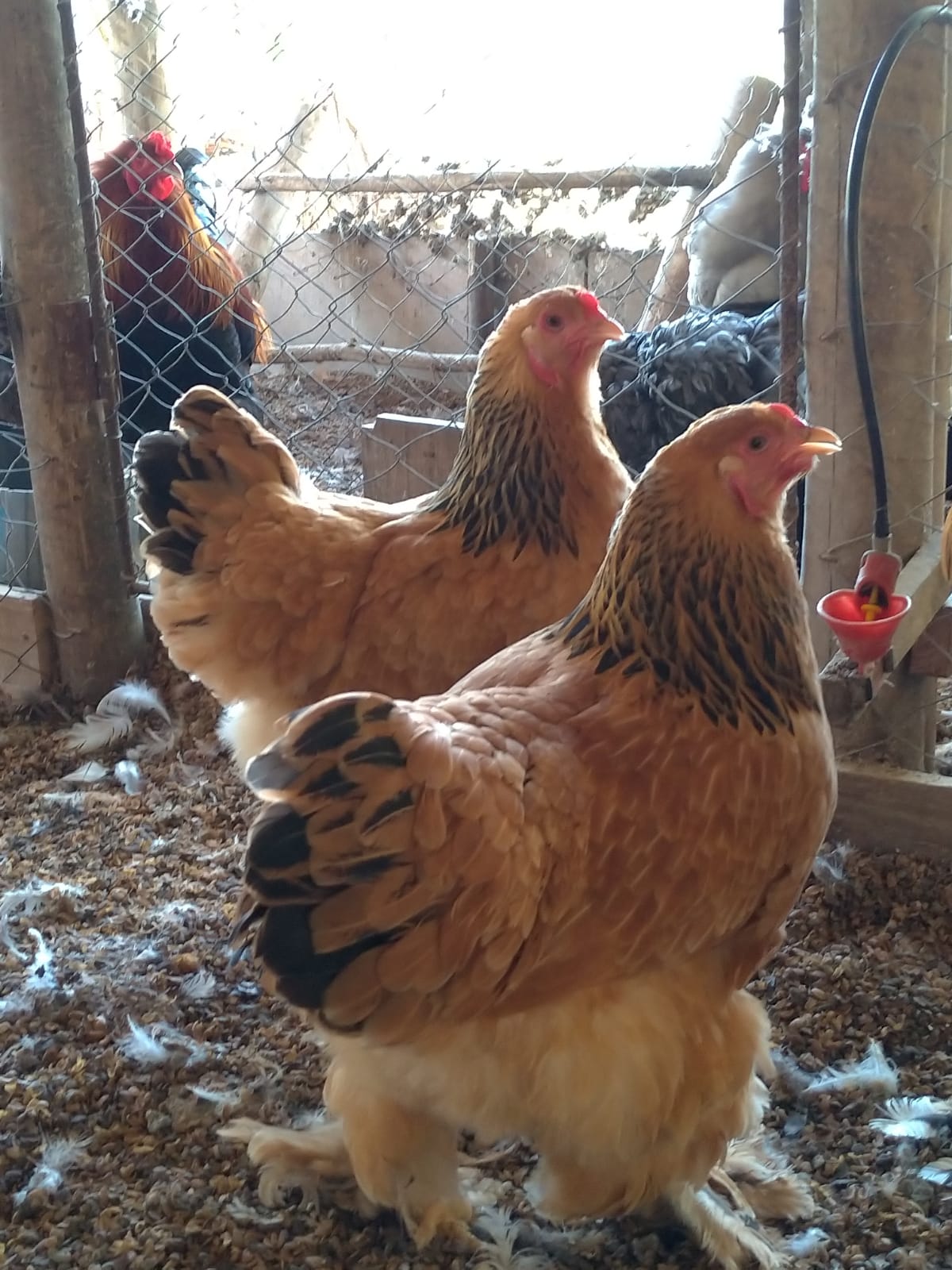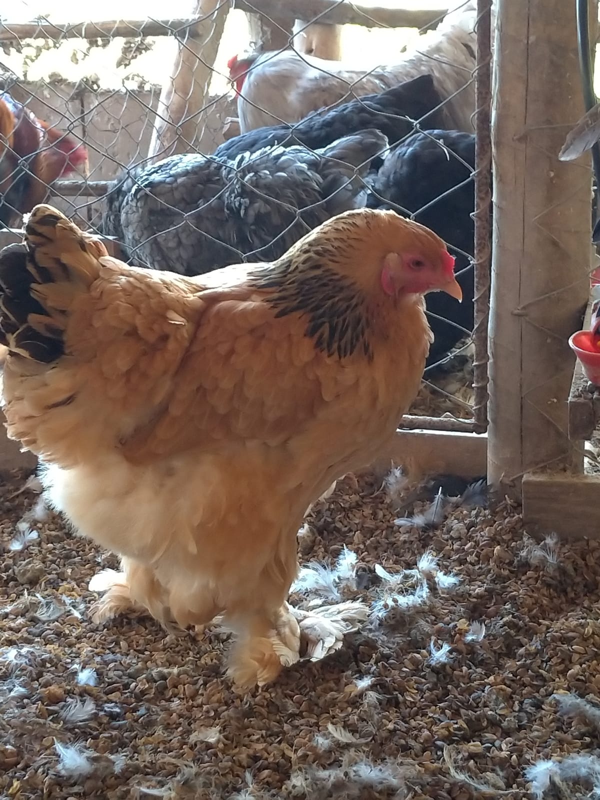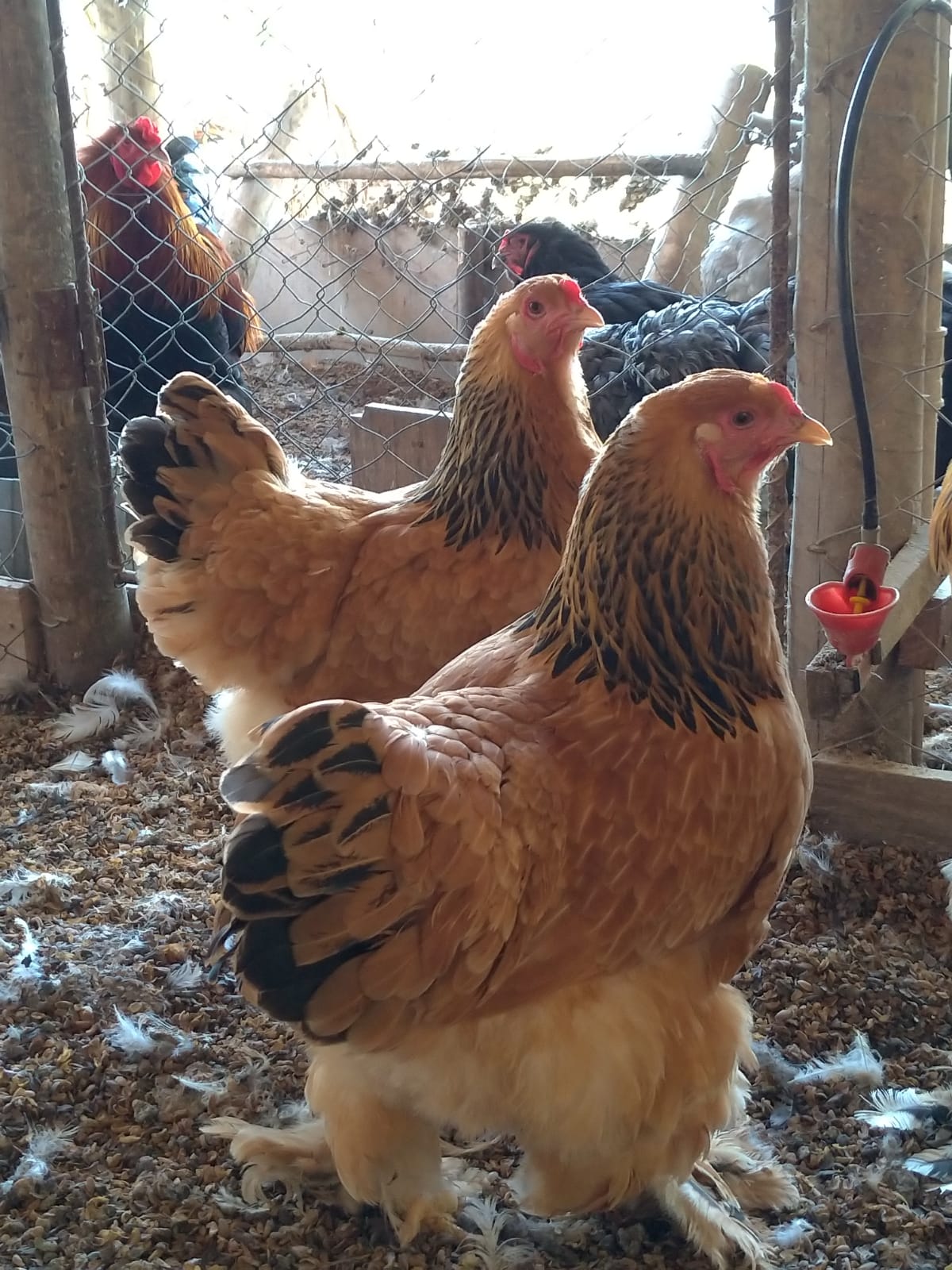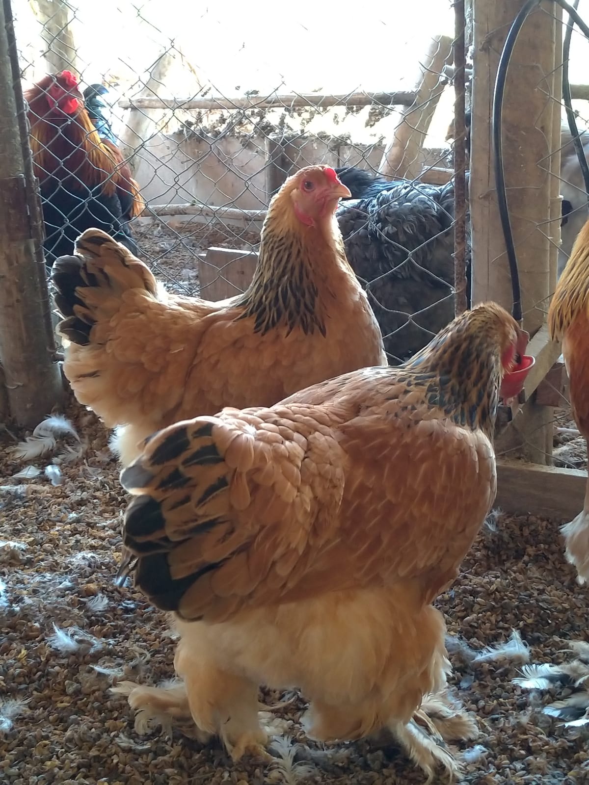 O galo pesa de 5 a 7 kg e mede de 60 a 80 cm de altura. A fêmea pesa de 4 a 5 kg e produz de 150 a 200 ovos por ano.