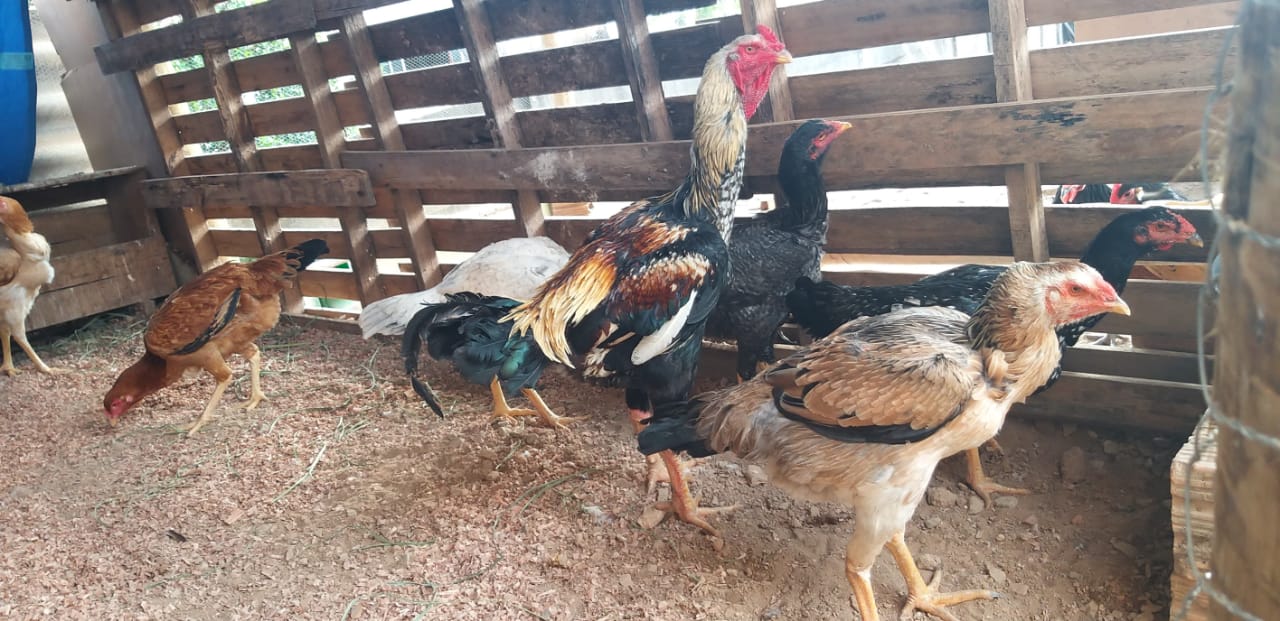 A medida do tamanho do animal é feita desde a ponta da unha do dedo médio da pata até a ponta do bico segurando o frango para que ele fique totalmente esticado, geralmente horizontalmente, pois nesta posição geralmente é calmo e mais fácil de medir.